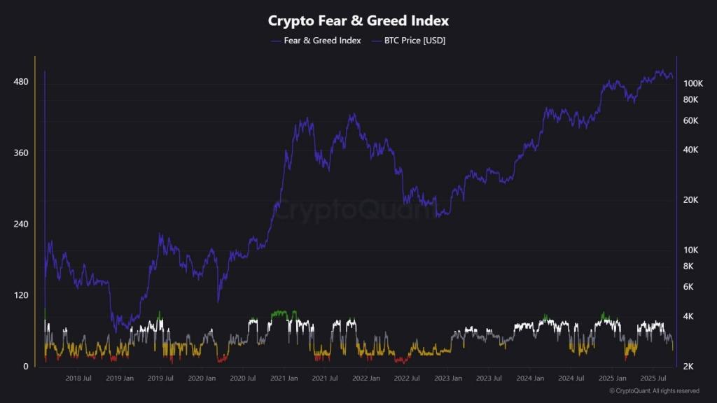 The Crypto Fear and Greed Index has slipped to its lowest level since March, raising fresh concerns over investor confidence even as Bitcoin and Ethereum attempt a recovery.